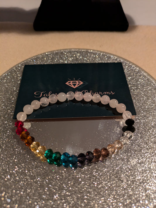 Rainbow & Rose Quartz Bracelet on stretch elastic
